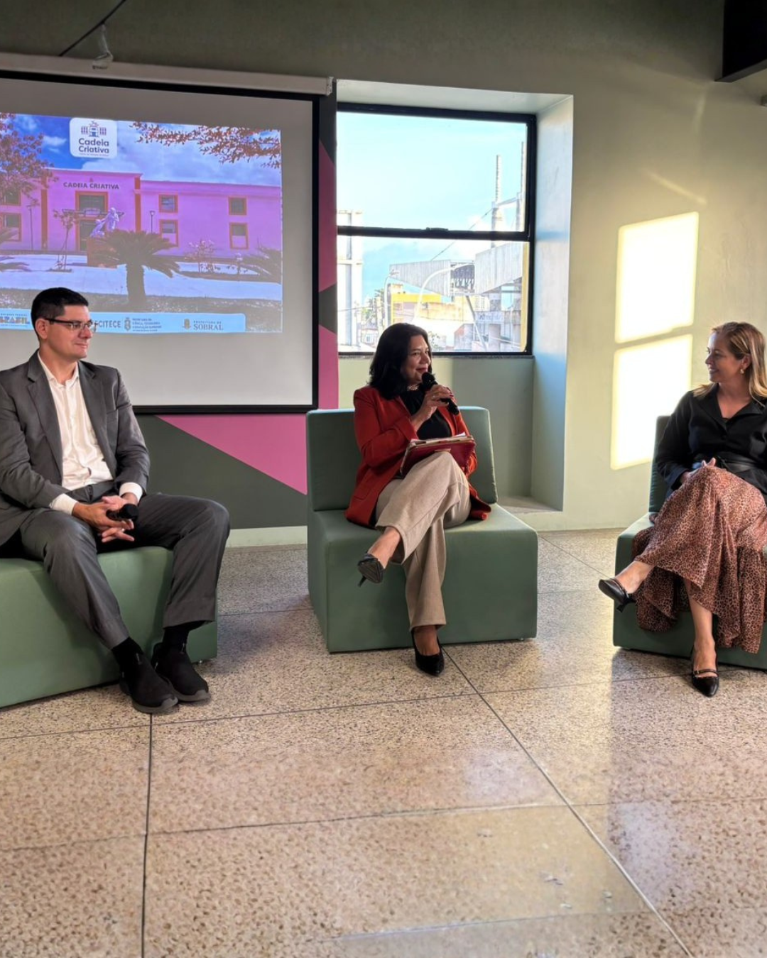 Márcia Noronha, coordenadora de Inovação da Secretaria do Desenvolvimento Econômico do Ceará (SDE), e Abraão Freires, diretor-presidente do Parque Tecnológico da Universidade Federal do Ceará (PARTEC/UFC), conduziram a roda de conversa, mediada por Márcia Rodrigues. O encontro abordou a importância da inovação em diferentes vertentes, destacando seu papel no fortalecimento do empreendedorismo e na geração de soluções para desafios locais e regionais. Também foram discutidas estratégias para estimular a cultura da inovação e do compartilhamento de experiências.